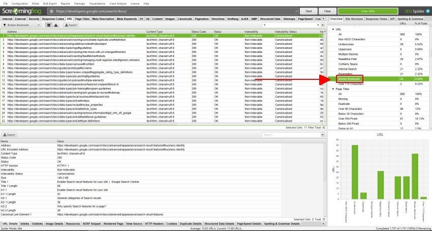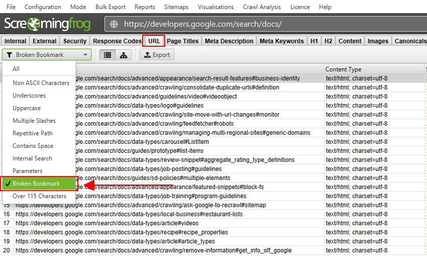 - 3. Clicca sulla scheda “URL” e utilizza il filtro “Broken Bookmark”