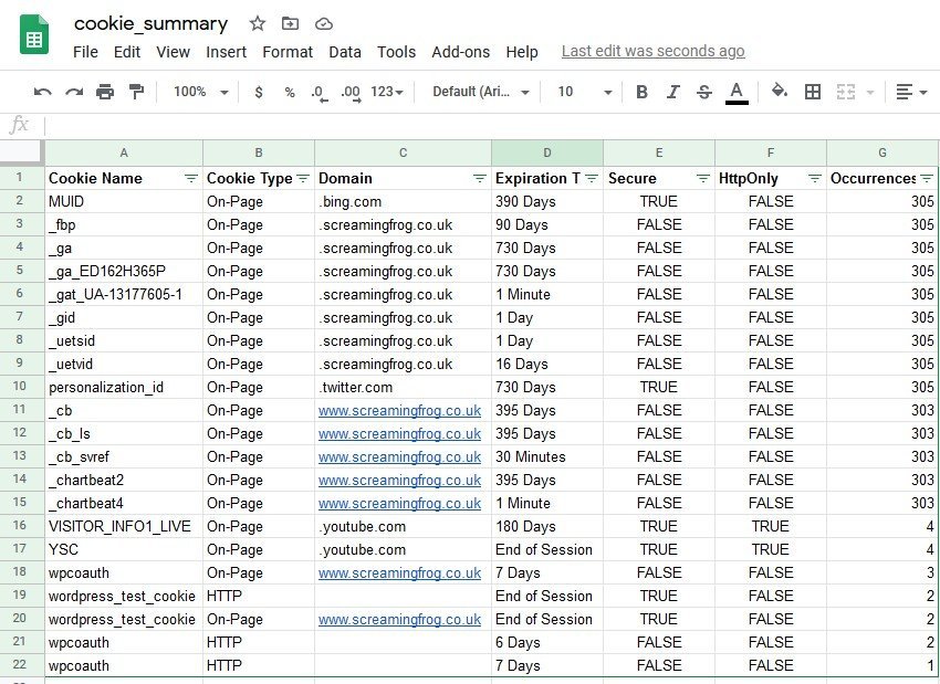 Vista l’importanza ed evoluzione delle leggi sulla privacy è diventato sempre più importante capire la presenza e lo scopo dei cookies sul nostro sito web in modo da essere conformi ed non incorrere a sanzioni. Grazie a Screaming Frog hai la possibilità di identificare i cookie che vengono impostati automaticamente senza il consenso esplicito dell’utente sull’intero tuo progetto.