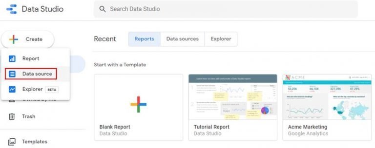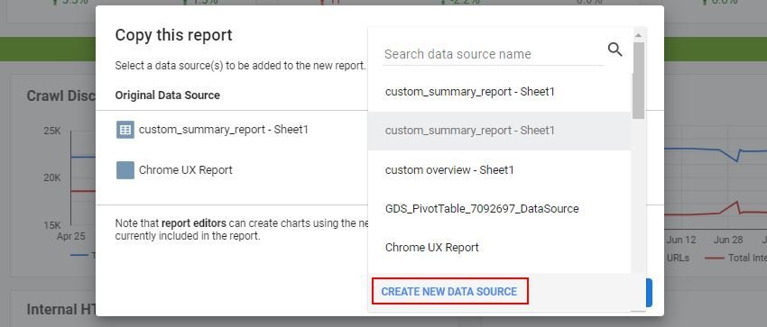 Una volta creata la tua copia, Data Studio ti permette di creare la tua nuova “Data Source”
