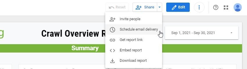 Data Studio ti permette di pianificare degli alert tramite email per rimanere sempre aggiornato sullo stato di salute del tuo sito web. Per impostare questa funzionalità ti basta attivare “Schedule Email Delivery”.