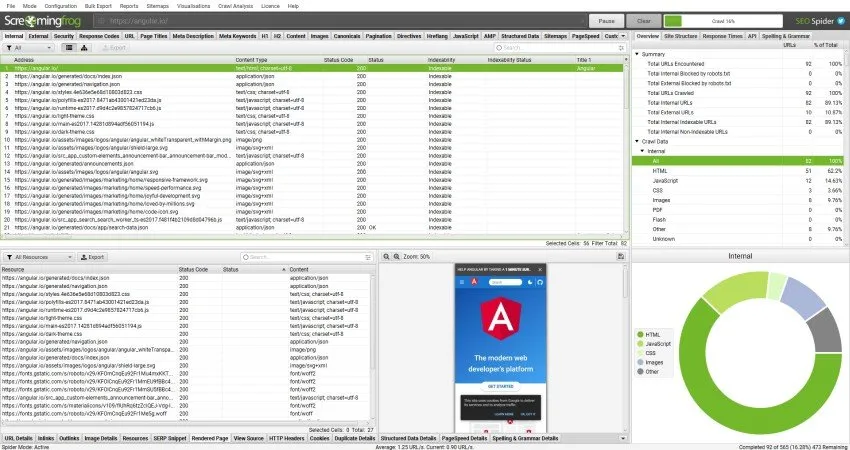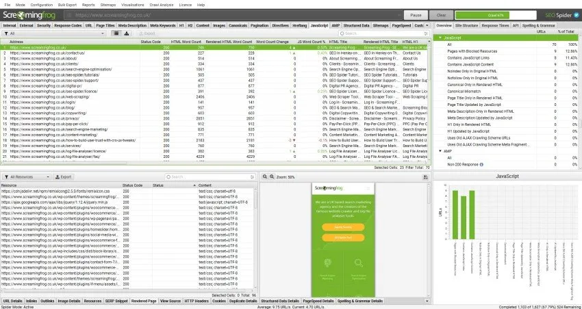 The Seo Spider will alert you if there is content that is only in the HTML rendered after the JavaScript comes into play allowing you a complete view of the behavior of the website.