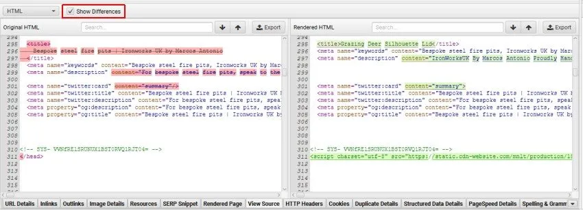 The SEO Spider will scan both the original and rendered HTML to identify pages that have content or links available only client-side and flag other key dependencies.
