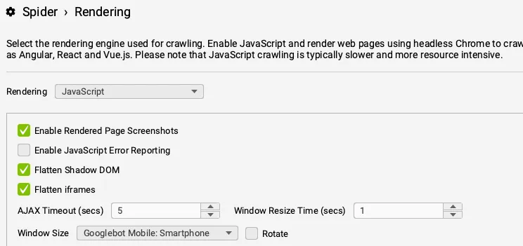 This Screaming Frog feature is also very useful for checking whether or not meta tags or other Seo elements are present in static html or are only served and/or modified once the JavaScript has been executed.