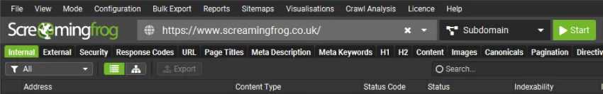 The first step is very simple and you only need to enter the domain or subdomain to be analyzed without having to configure anything in the Seo spider except the “Rendering JS” crawling mode to analyze any elements entered after JS processing.