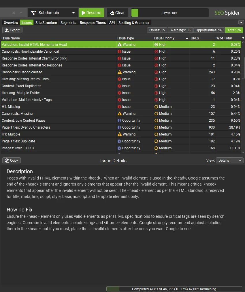 This tutorial explains how to use Screaming Frog SEO Spider to identify invalid HTML elements in the header, visualize what metadata might be adversely affected, and how to fix the problem that is causing the error.
