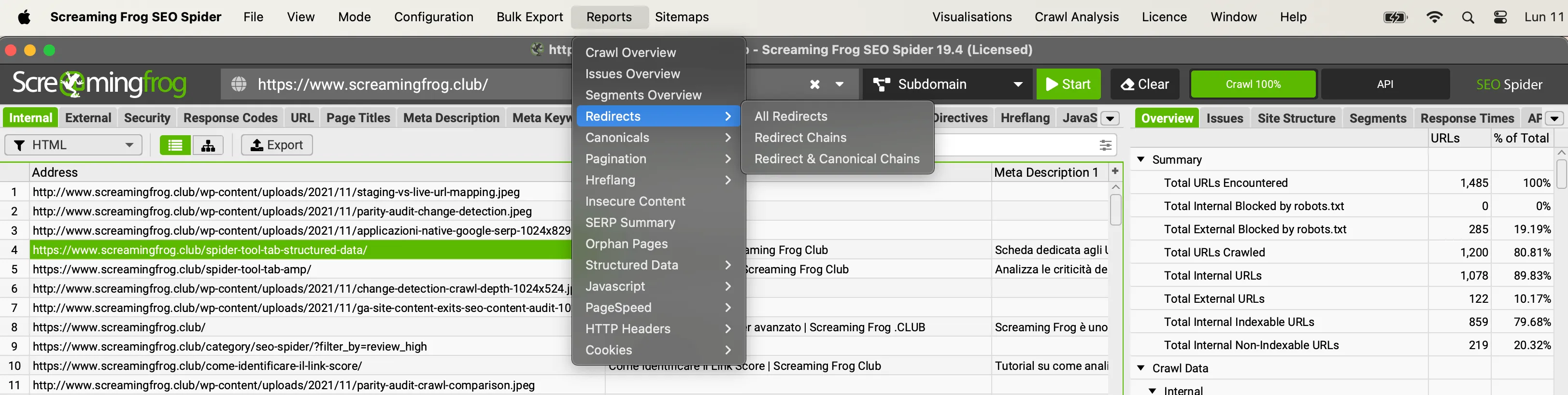Screaming Frog has invested heavily over the past few years in updating the Spider Tool and concurrently the “Reports” available have also grown. The tool allows you to indulge in data exports by ensuring a whole series of ad hoc documents to analyze most critical issues specifically.