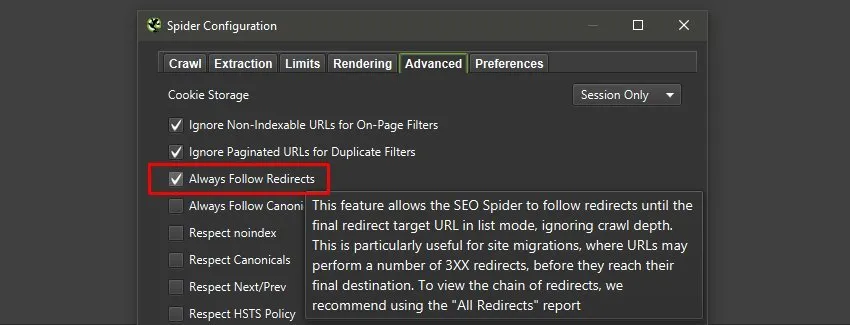 At the end of the crawl it exports the “All Redirects – All Redirects” report.